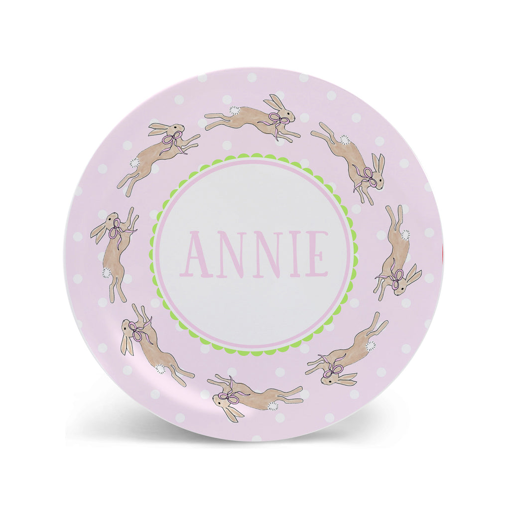 Bunnies in Pink Personalized Kids Plate | Custom Child Easter Bunny Plate